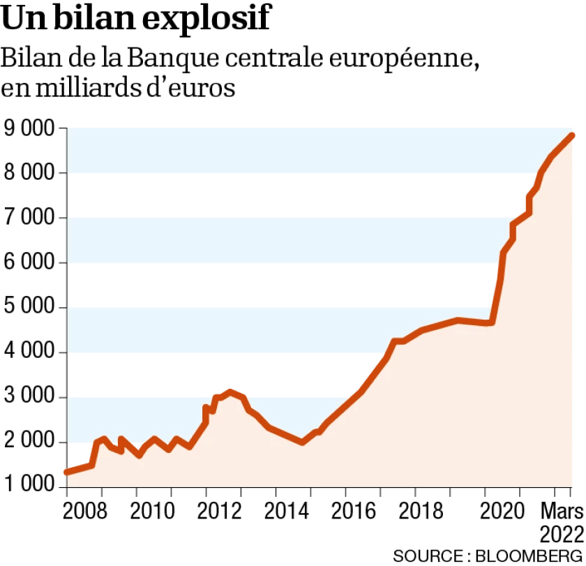 Ce programme de « quantitative easing », a fait une pause fin 2018, ou 2 600 milliards d’euros avaient été déversés sur les marchés, pour être repris, de plus belle, le 12 septembre 2019 à des niveaux jamais atteint jusque-là (voir le graphique ci-dessous).